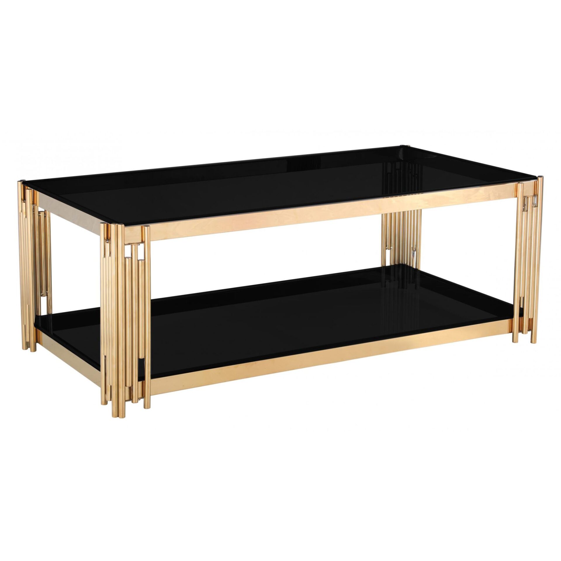 The Cleveland Coffee Table is a luxurious statement piece that combines bold design with practical functionality. Featuring a sleek black tempered glass top, it exudes modern elegance while offering a durable and easy-to-clean surface.